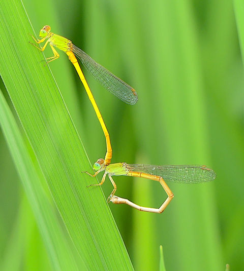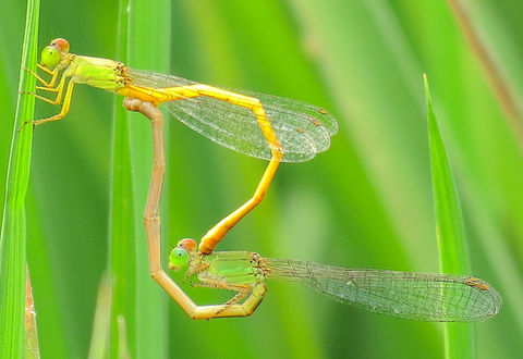 All odonates have aquatic larvae called naiads or nymphs, and all of them, larvae and adults, are carnivorous and are almost entirely insectivorous, although at the larval stage they will eat anything that they can overpower, including small fish, tadpoles and even newts. The adults are superb aerial hunters and their legs are specialised for catching prey in flight.